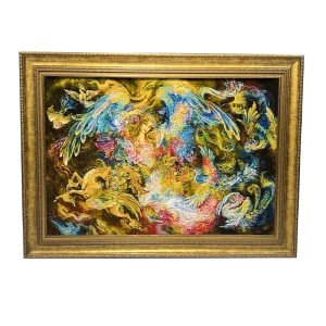 این تابلو فرش به‌دلیل استفاده از ابریشم اعلا در بخش‌هایی از طرح، هنگام تابش نور جلوه‌ای براق و درخشان دارد و همین ویژگی باعث می‌شود نگاه هر بیننده‌ای را به خود جذب کند. قاب طلایی و فاخر که در تصویر مشاهده می‌کنید نیز بر ارزش هنری و زیبایی اثر افزوده و آن را به گزینه‌ای مناسب برای هدیه‌های خاص یا استفاده در فضاهای لوکس بدل کرده است.