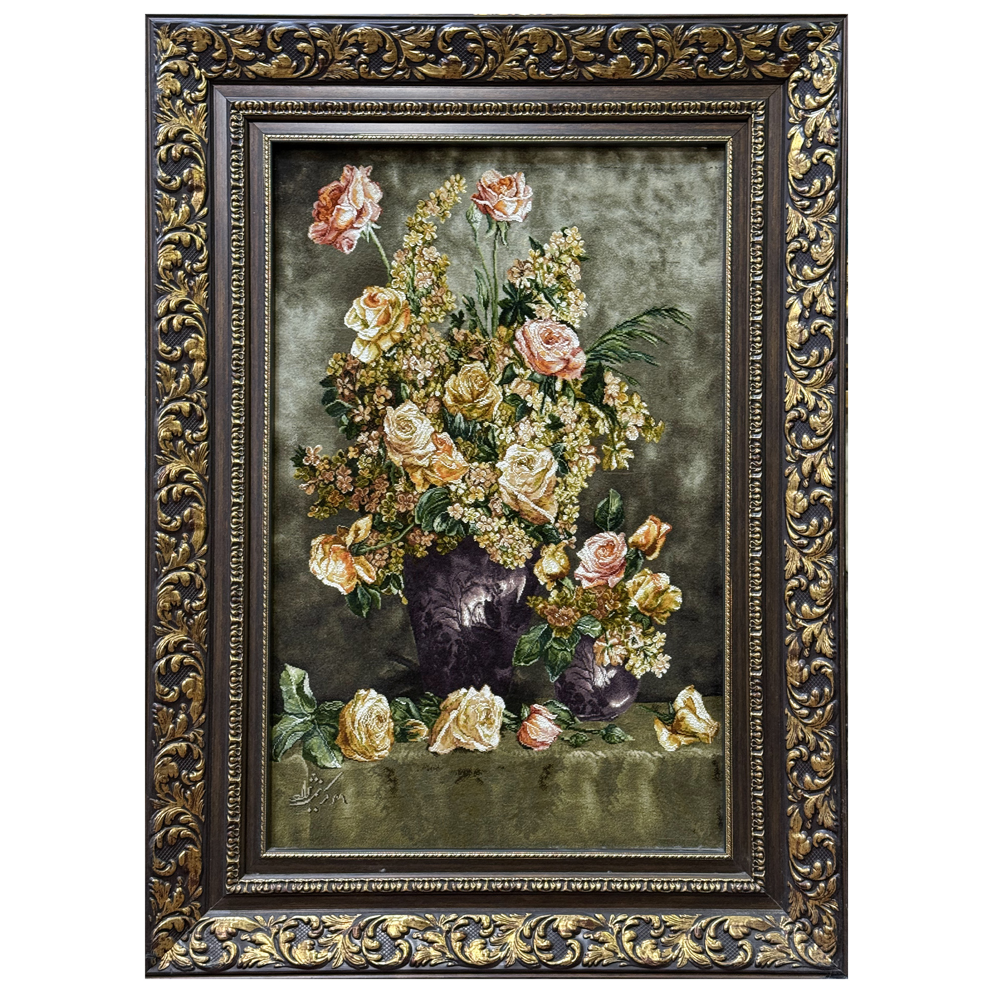 تابلو فرش گلدان گل کریم نزاد کد 1100302