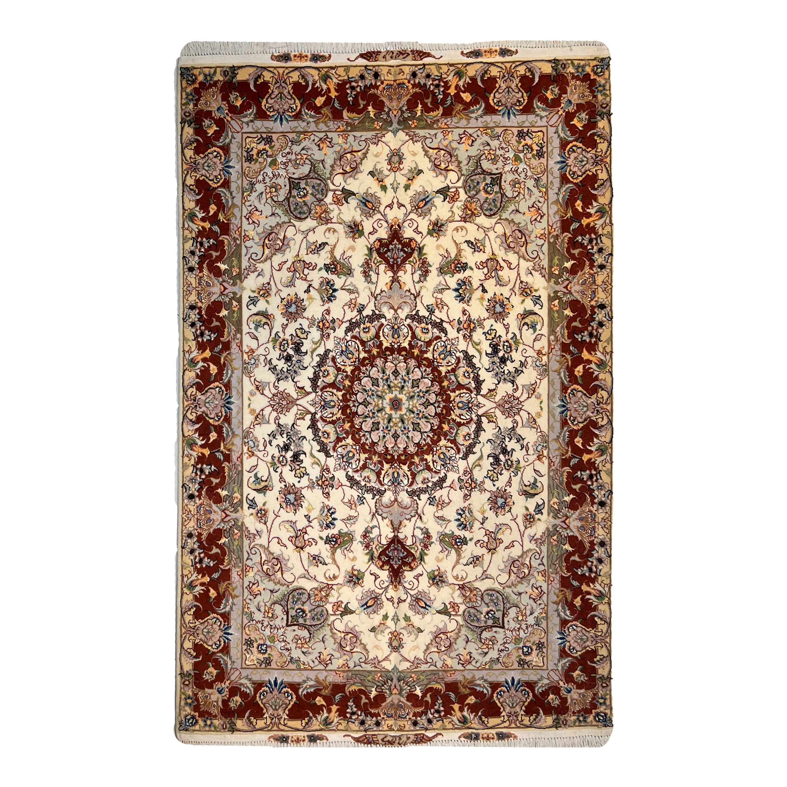 تک ذرع نیم تبریز به شیوه‌ای دستبافت تولید شده که حاصل ساعت‌ها کار دقیق بافنده روی دار قالی است. تراکم بافت این فرش ۵۰ رج بوده که نشان‌دهنده ظرافت فوق‌العاده و جزئیات دقیق در طرح آن است. هر گره این قالیچه با دقتی مثال‌زدنی بسته شده تا نقوش به‌صورت یکدست و هماهنگ شکل بگیرند.