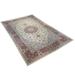 این فرش به صورت نو و در شرایط کاملاً سالم عرضه میشود. تمیزی، براق بودن نخها و سلامت کامل گرهها نشان میدهد که از زمان اتمام بافت تا امروز، در شرایط ایدهآل نگهداری شده است.