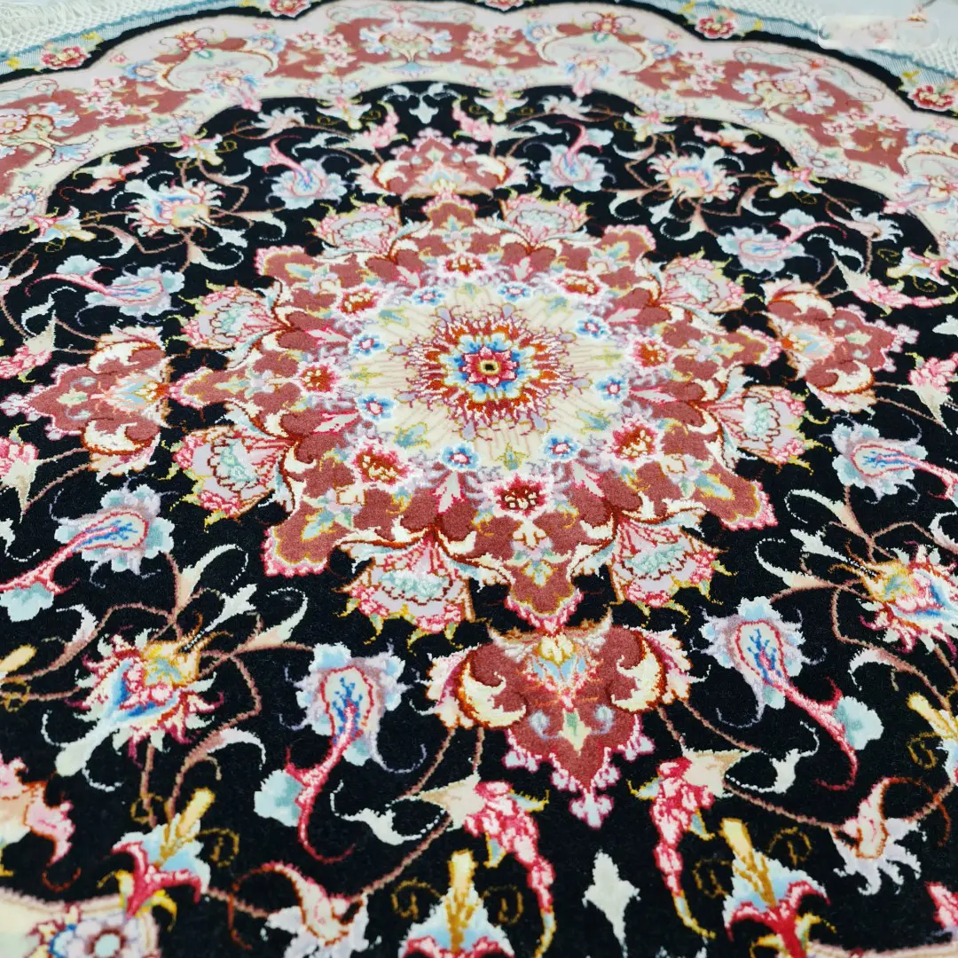 فرش دستباف دایره علیا مشکی قطر 1.5 کد 1100326