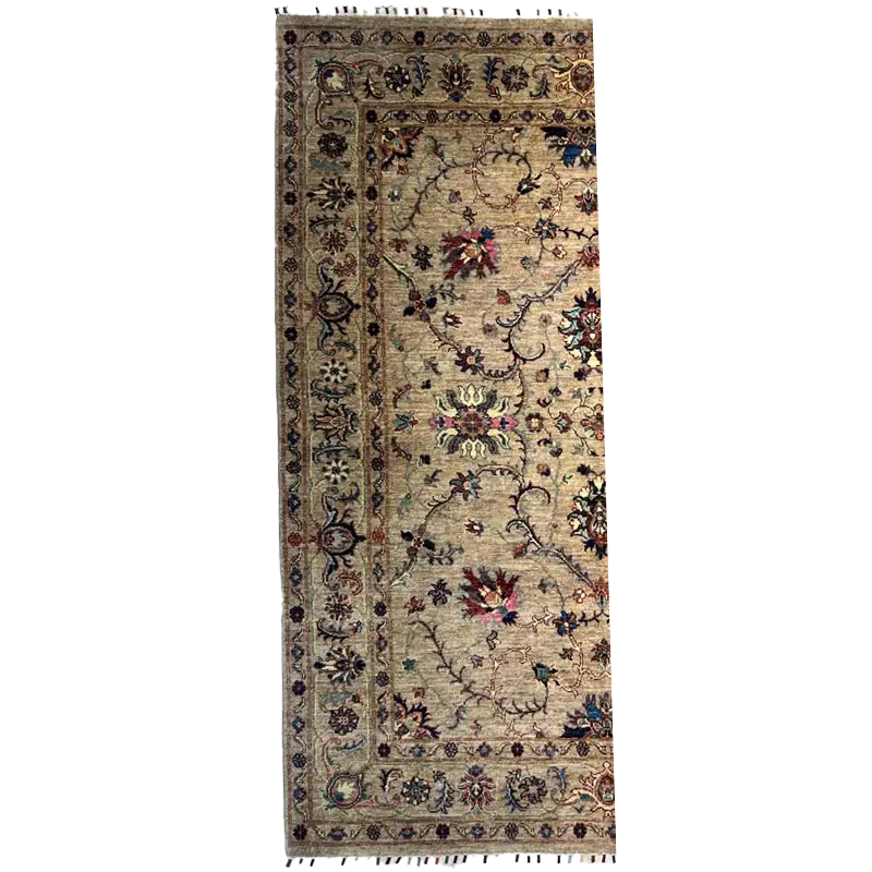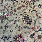 این قالیچه دارای طرح افشان با زمینه طوسی نقرهای است که آرامش و هماهنگی خاصی به فضای دکوراسیون میبخشد. طرح افشان یکی از محبوبترین نقشههای قشقایی است که بهجای ترنج مرکزی، نقشها به صورت پراکنده در سراسر زمینه فرش پخش شدهاند و حس یکنواختی و نظم دلنشینی را القا میکنند.
