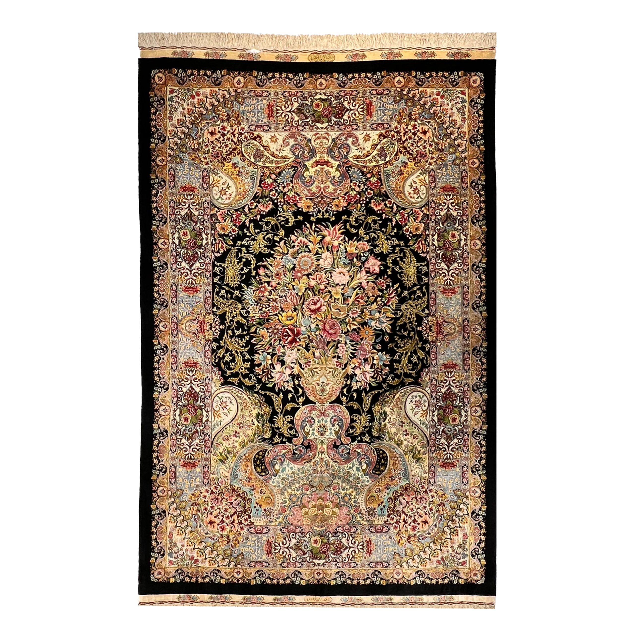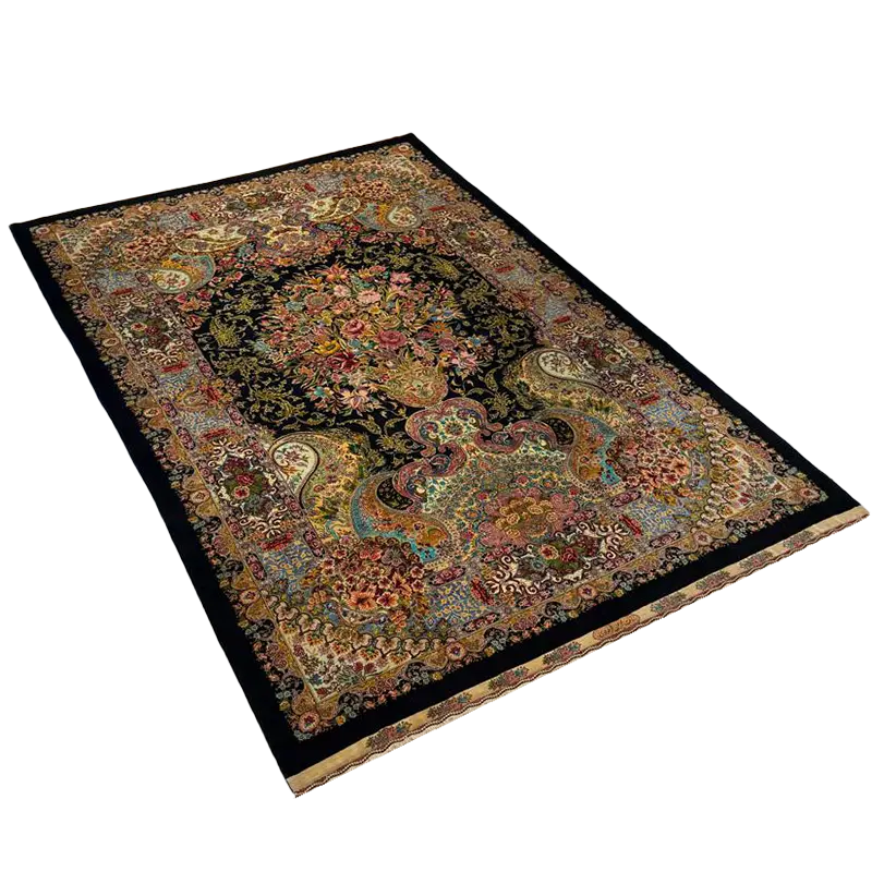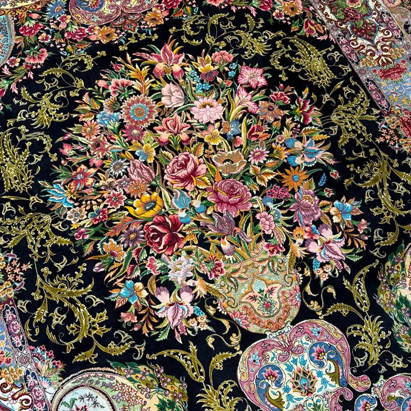قالیچه قم تمام ابریشم: تابلویی از لطافت، شکوه و هنر ایرانی