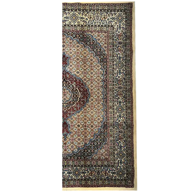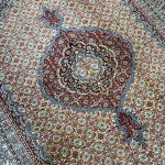 قالیچه مود بیرجند با تراکم 45 تا 50 رج بافته شده است که نشاندهنده کیفیت و دوام بالای آن است. این تراکم باعث میشود طرحها با وضوح و ظرافت خاصی نمایان شوند.