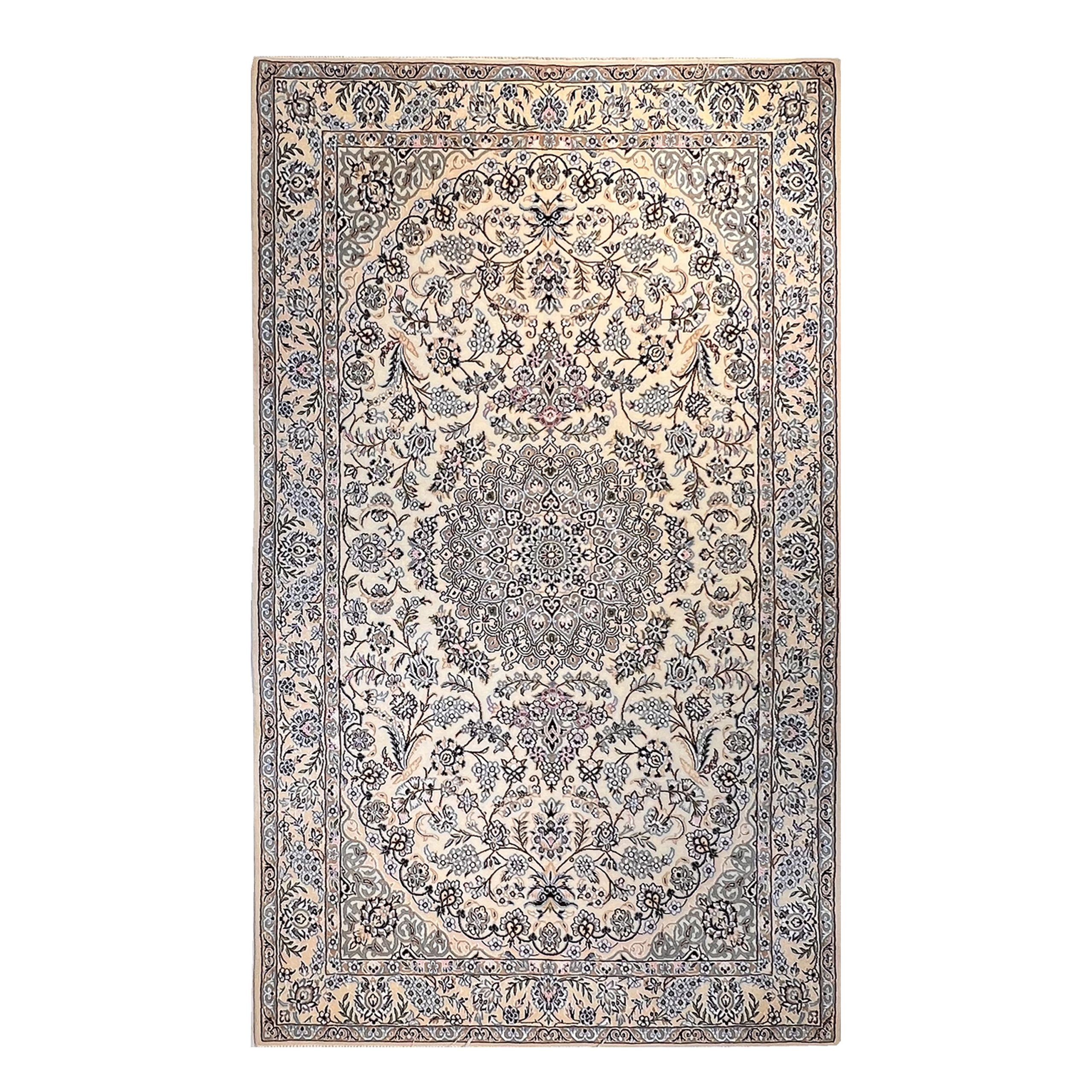 در دل کویر مرکزی ایران، شهری با تاریخ، هنر و فرهنگ غنی به نام نایین قرار دارد. شهری که از گذشتههای دور تا به امروز، با قالیهای نفیس و ظریفش شناخته شده است. در میان آثار ماندگار این دیار، قالیچه نایین جایگاهی ویژه دارد. این قالیچهها نه تنها زینتبخش خانههای ایرانیاند، بلکه در سراسر جهان نیز بهعنوان نماد ظرافت، اصالت و هنر ایرانی شناخته میشوند. یکی از نمونههای برجستهی این دسته، قالیچه نایین (اصفهان) با ابعاد ۲۳۰×۱۴۰ سانتیمتر و مساحت ۳٫۲۲ مترمربع است که در ادامه با جزئیات دقیق به معرفی آن خواهیم پرداخت.