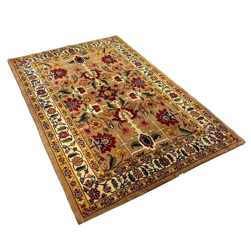 رنگ حاشیه: کرم روشن، با نقشهای گلدار و اصیل