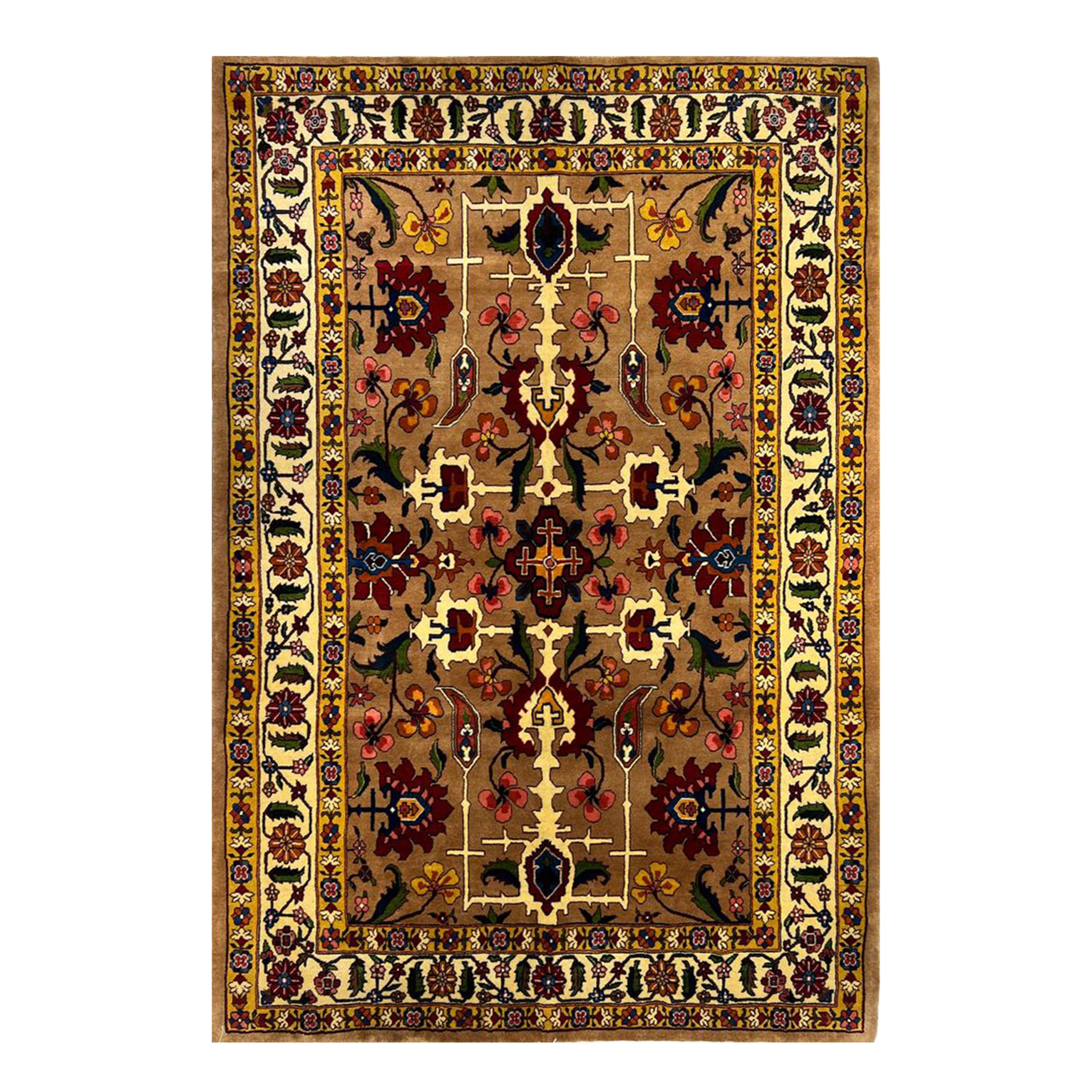 طرح: نقشه افشان با زمینهی نسکافهای، ترکیبی از گلها و موتیفهای سنتی