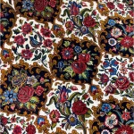 طرح: نقش قاب شیدایی با گلهای درشت و متقارن در بستر زمینهای کرمرنگ