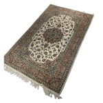 بافت نصیریانی در این قالیچه، ظرافت و انسجام طرح را تضمین میکند و در عین حال حس اصالت و سنتی بودن را در نگاه اول منتقل میسازد.