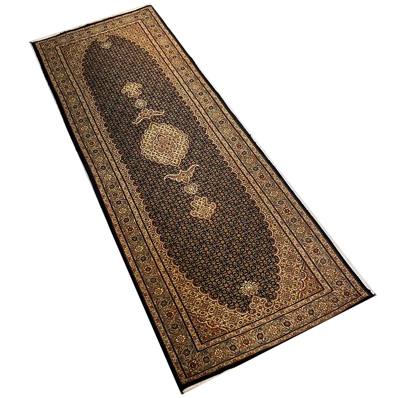 نقشه ماهی.کرک ابریشم.زمینه سرمه ای.طرح افشان نقشه چهار چنگ
