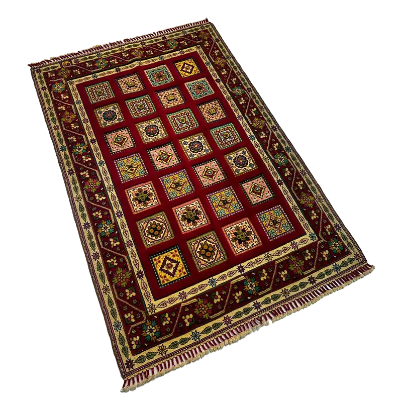 🔸 طرح خاص چهلتکه: هر قاب از این گلیم فرش، روایتگر یک داستان از هنر اصیل ایرانی است. طراحی منحصربهفرد آن توجه هر بینندهای را جلب میکند.